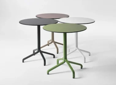 - Basi centrali, a tre o quattro gambe, o basi allungabili, in acciaio, alluminio, polipropilene o legno massello.